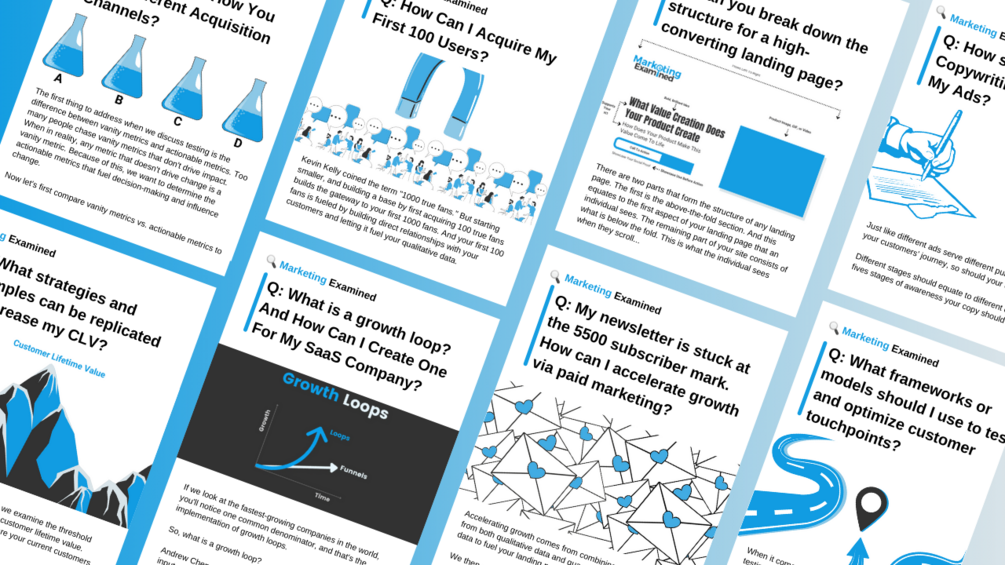 These are your questions, challenges, and plateaus getting dissected and fixed as if I was hands-on with your growth team. Meaning, practicality is everything. You'll be able to read a case study one minute and start implementing the next.